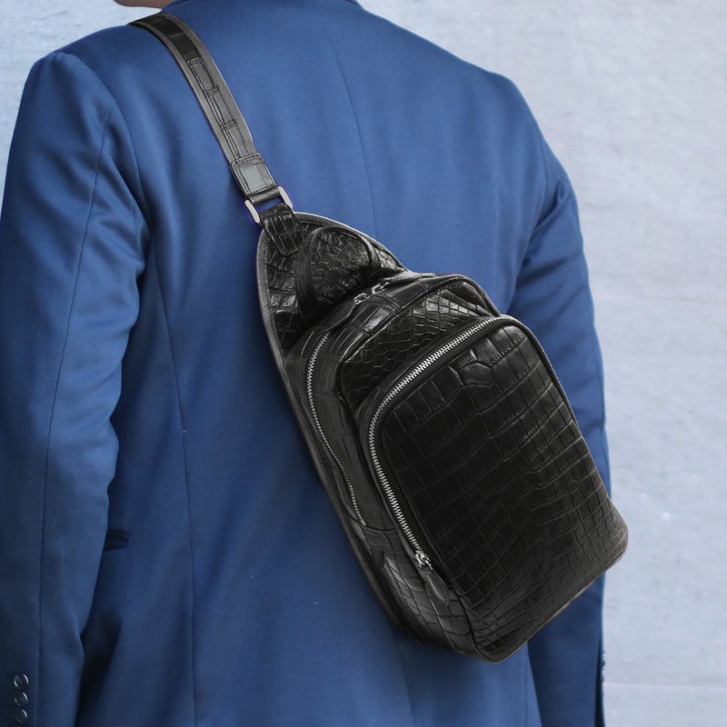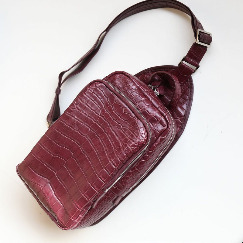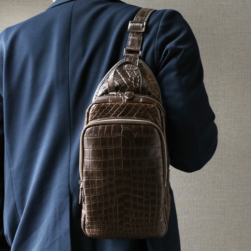 ※キーワード:ショルダーバッグ ボディバッグ スリングバッグ 鰐革 本革 クロコダイルバッグ メンズバッグ レディースバッグ カジュアル