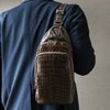 天然皮革 エキゾチックレザー クロコダイル メンズ ボディバッグ スリング ショルダーバッグ 斜め掛け 鰐革 マット加工 ユニセックス スリングバッグ 本革 保証書 付き プレゼント ギフト mensbag