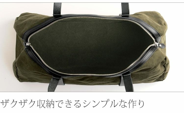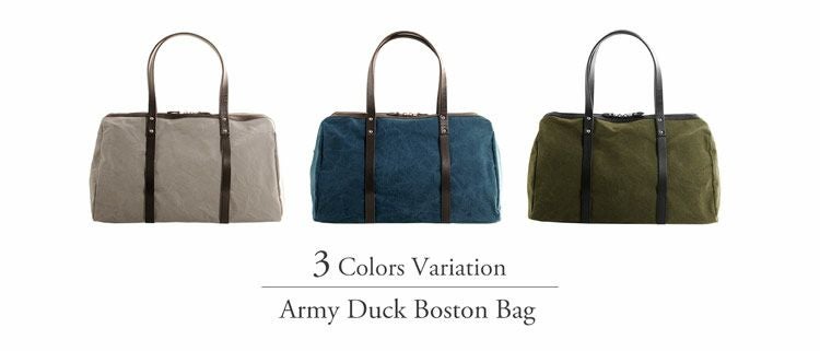 しなやかで上品さ持ったアーミーダック生地を使用したシンプルなボストンバッグ。