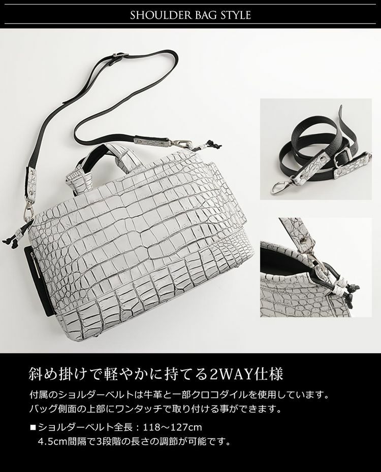 | 商品名:クロコダイル トートバッグ メンズ 大きめ A4 対応 日本製 JRA 2WAY 仕様 斜めがけ マット 加工 目地染め 全8色 |