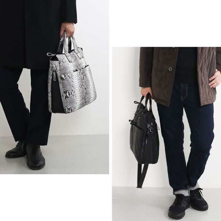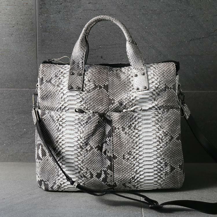 | 商品名:ダイヤモンド パイソン メンズ トートバッグ ブリーフケース 2WAY ショルダーベル付き A4 対応 ビジネスバッグ ブラック/ナチュラル 4FA |