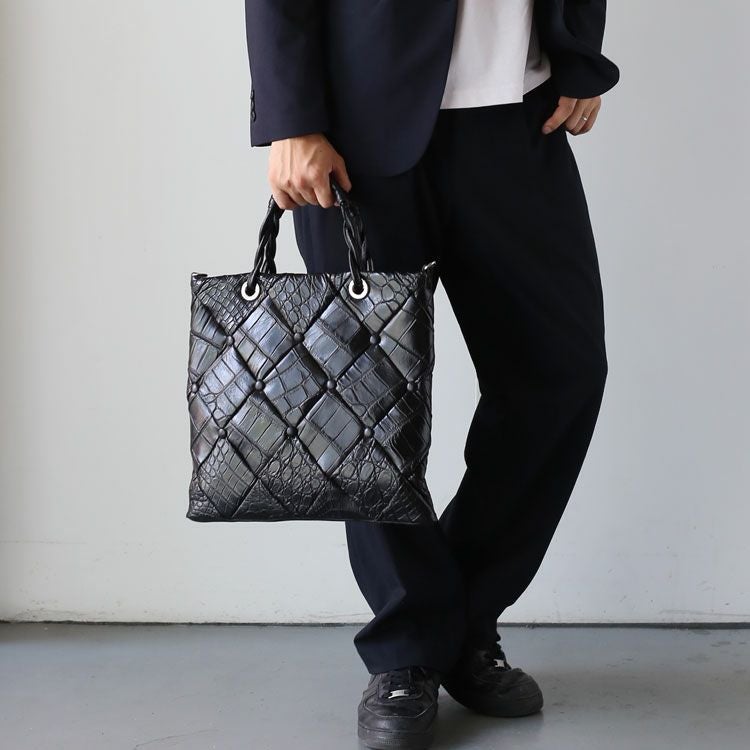 クロコダイル ダイヤ柄 編み込みデザイン 2way トートバッグ 日本製 JRA メンズ A4ファイル 薄型 ひし形 菱形 デザイン バッグ ショルダーバッグ (06001921-mens-1r)