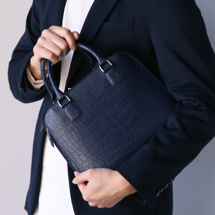 ナイルクロコダイル ハンドバッグ クロコダイル メンズ 2WAY バッグ ショルダーベルト 本革 センター取り マット加工 日本製 JRA 天ファスナー A5 収納 4F(06001946-mens-1)