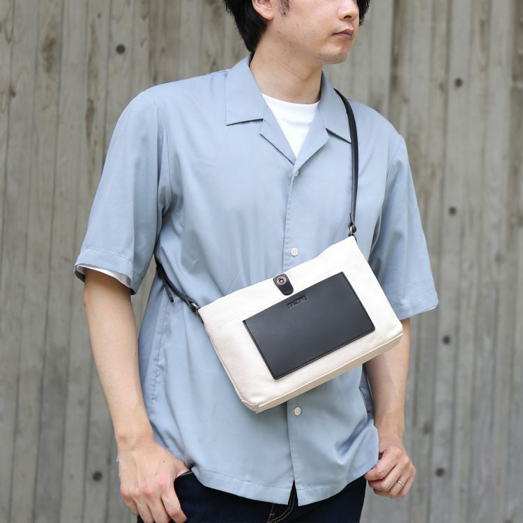ヌメ革を組み合わせることで高級感をプラスしたサコッシュ。