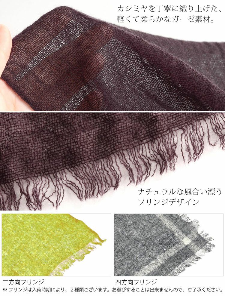 Filomo やさしい肌触りの 内モンゴル産 アルバス カシミヤ100% ガーゼ ストール 大判 7F