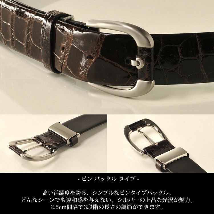 | 商品名:クロコダイル ベルト 35mm シャイニング加工 / メンズ |