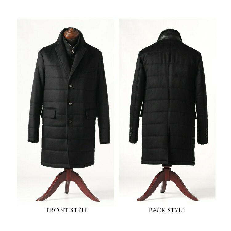 カシミヤ ステンカラー コート メンズ 比翼仕立て ステッチデザイン お台場仕立て ZF