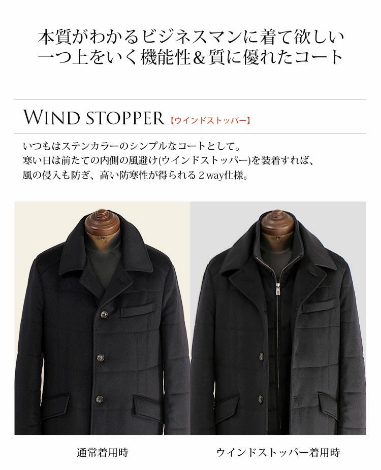 他の画像を見る sale カシミヤ & ウール ステンカラーコート メンズ キルティング裏地 ウインドストッパー付き 6F 通常価格 ¥ 53,900 SALE価格 ¥ 48,510 税込 (0件) お気に入りに登録する