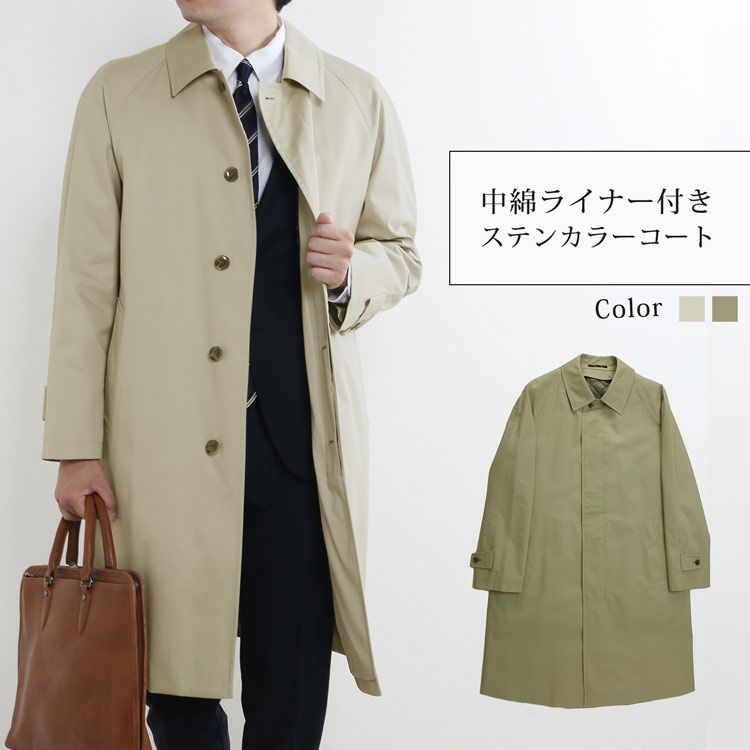 ステンカラーコート 中綿ライナー付き 綿100% (08000282r)