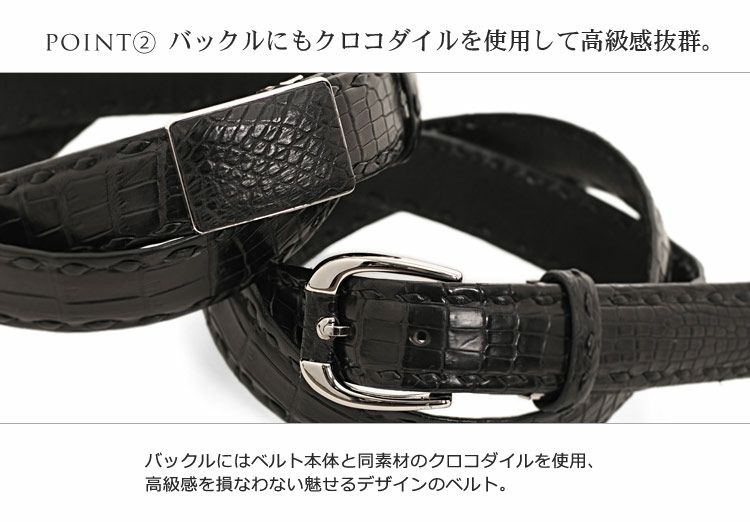 日本製 クロコダイル ベルト 35mm ハンドステッチ ピン バックル (No.06000355) |