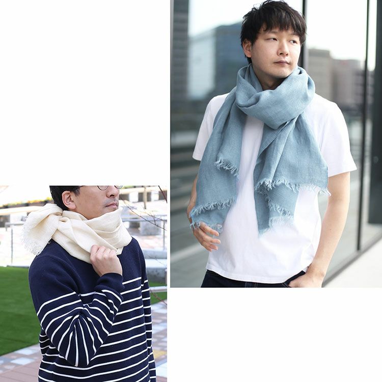 一般的なストールよりも大きめに作っているので男性の首元にもぐるぐる巻いてお使いいただけます。