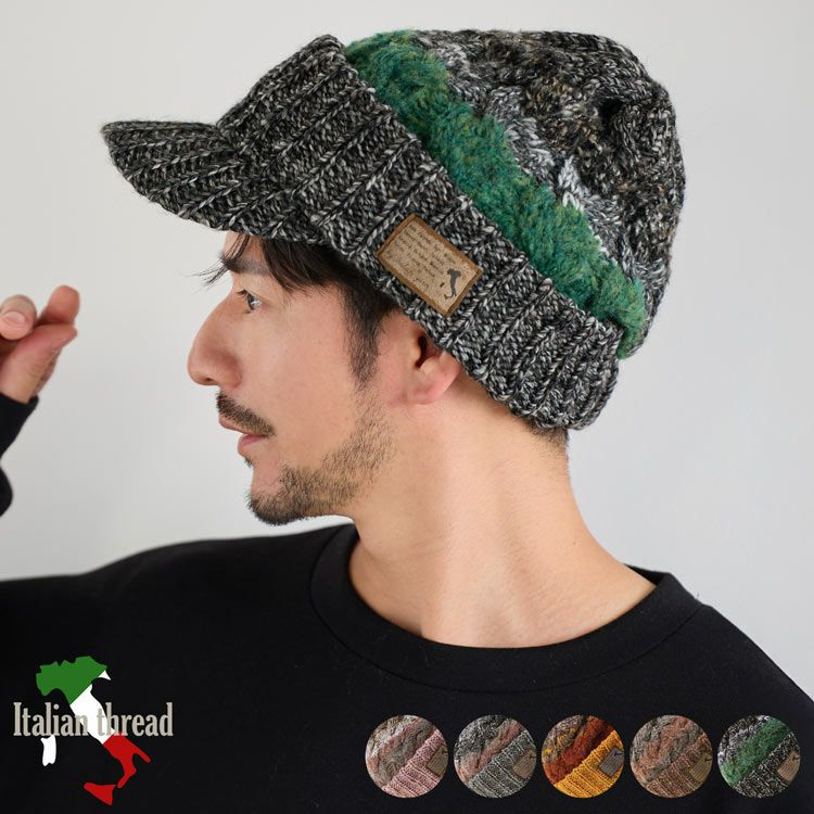 毛糸帽 キャスケット帽 キャップ 防寒アイテム 冬小物 ペアコーデ イタリア製糸