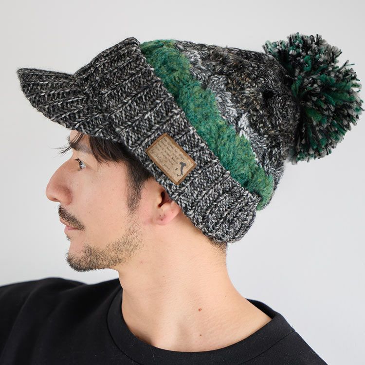 ニットキャップ ニット帽 メンズ ポンポン つば付き ボンボン 秋冬 おしゃれ ニット 帽子 厚手 イタリア糸 イタリア製糸使用 カラフル つば付きニット帽 キャスケット 暖かい あたたかい つばつき 防寒 ギフト プレゼント 7F (08000159-mens-1r)