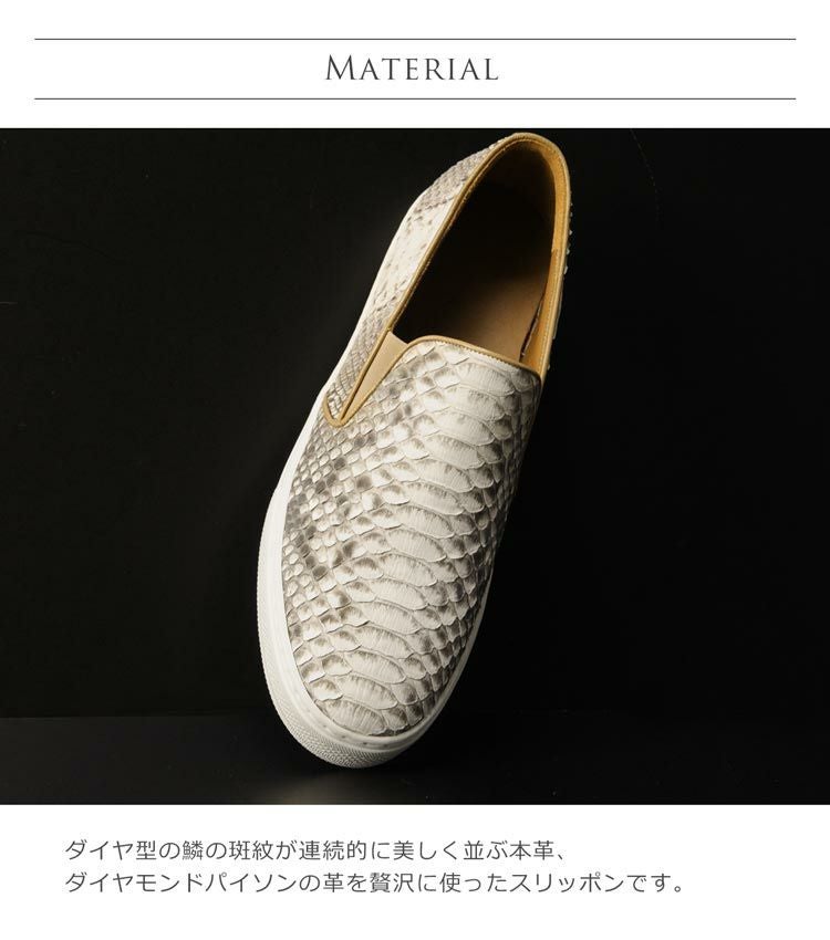 他の画像を見る exotic leather ダイヤモンド パイソン スリッポン メンズ レザー 蛇革 本革 スニーカー ナチュラル 26.5cm/27cm 4FA ¥ 47,300 税込 (0件) お気に入りに登録する