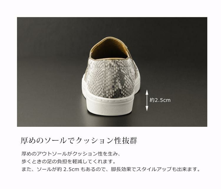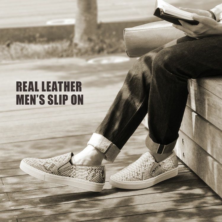 パイソンの鱗柄がカジュアルなリアルレザースリッポンです。