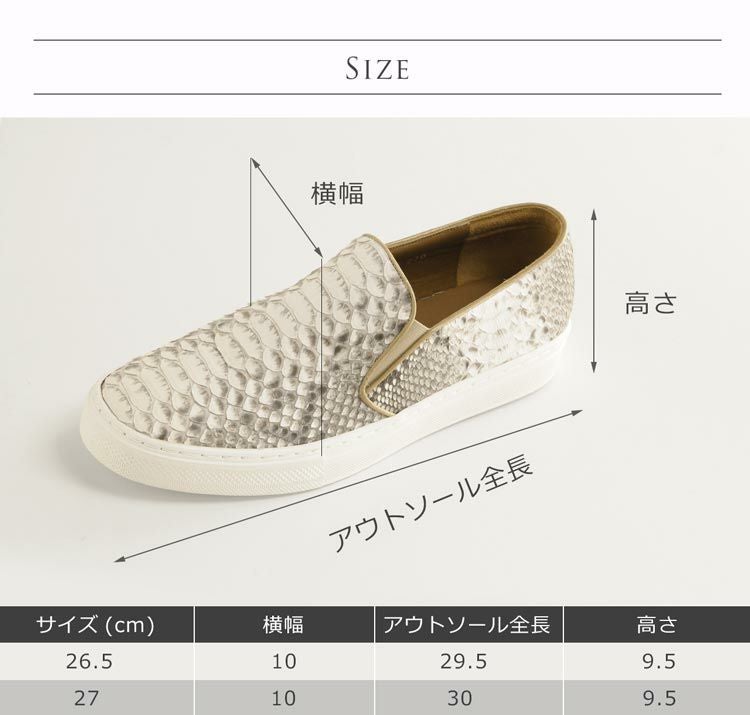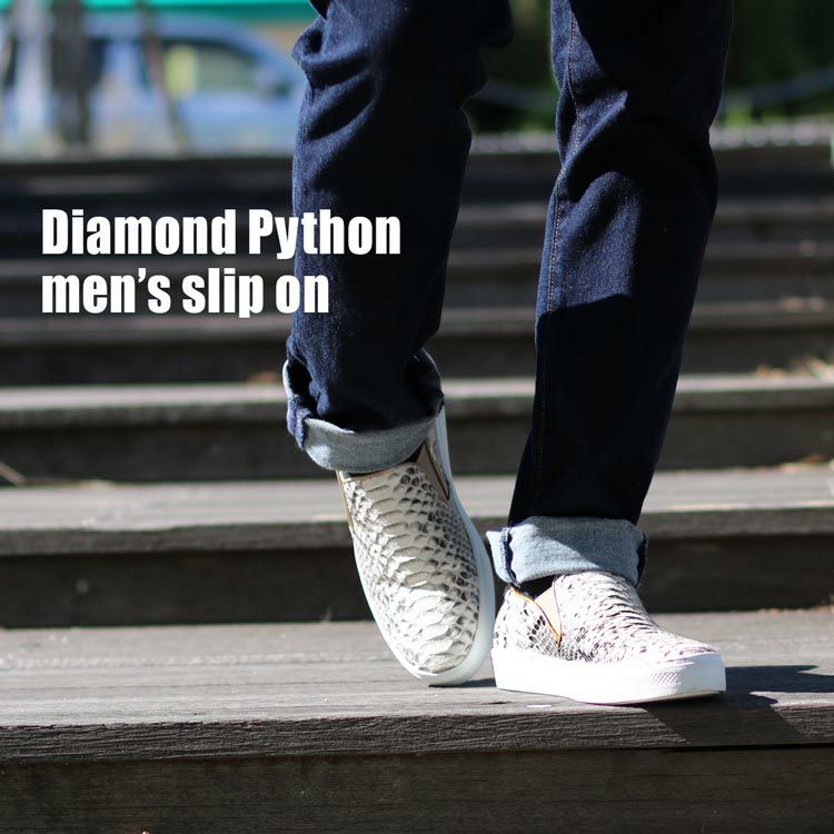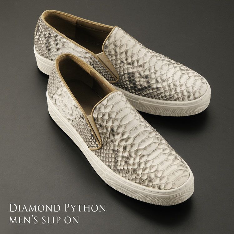 | 商品名:ダイヤモンド パイソン スリッポン メンズ レザー 蛇革 本革 スニーカー ナチュラル 26.5cm/27cm |