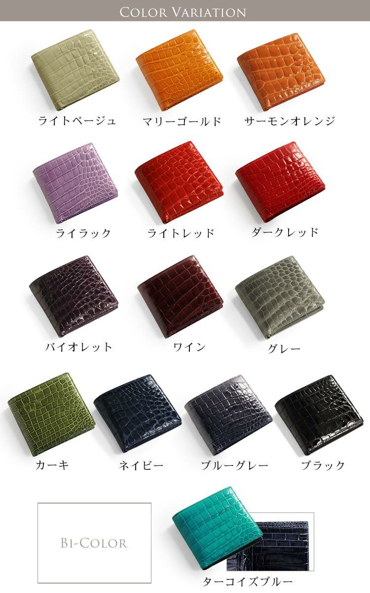 クロコダイル 折り財布 メンズ シャイニング 加工 両カード 全14色 4FA