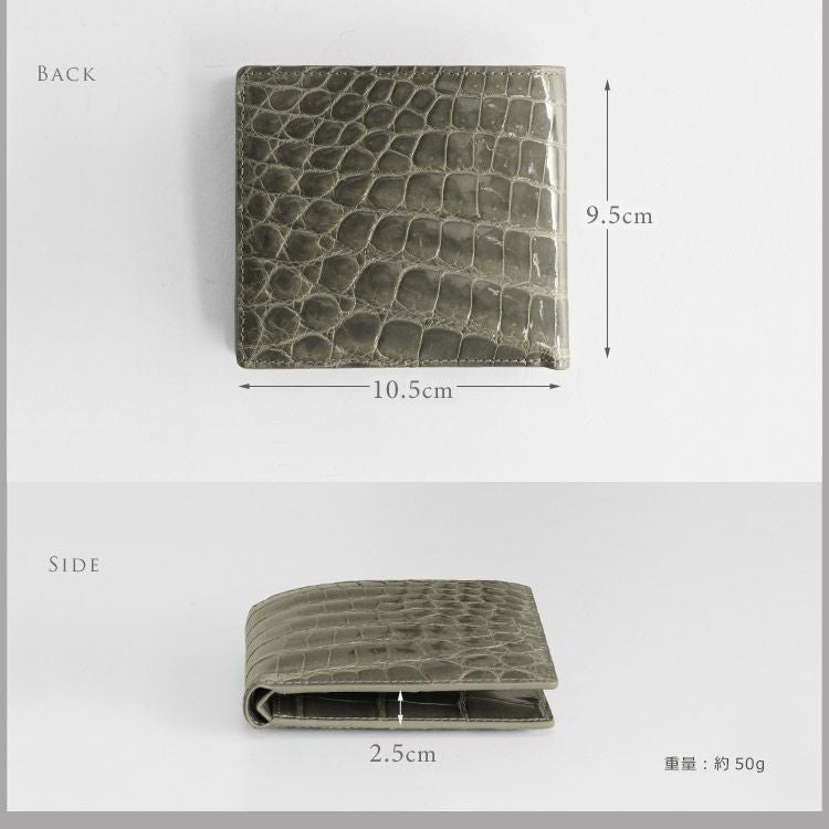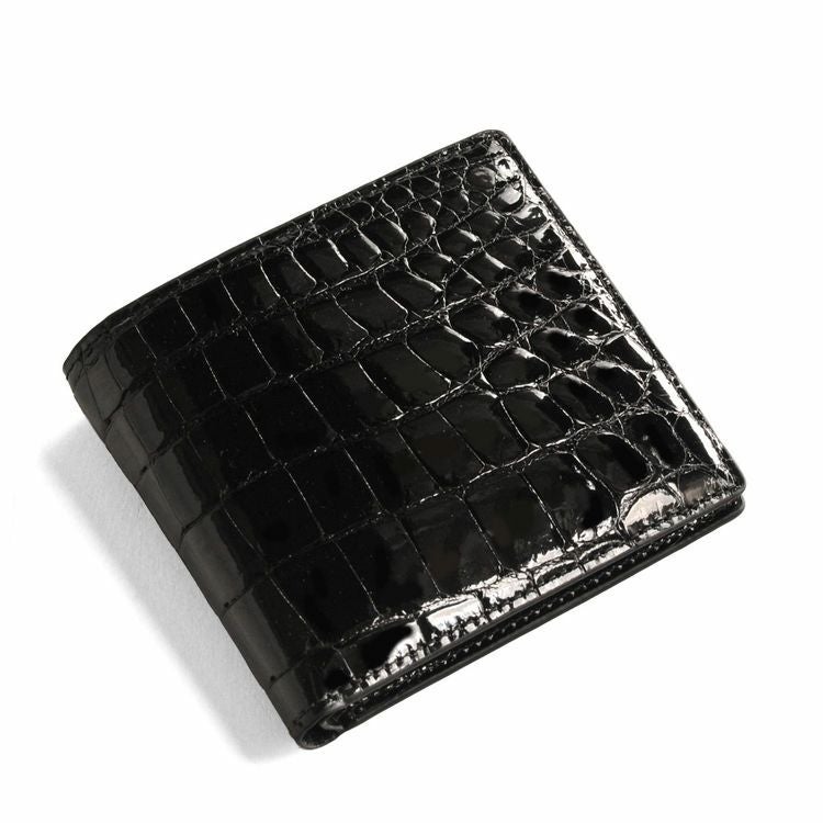 天然皮革 エキゾチックレザー クロコダイル 折り財布 メンズ シャイニング 加工 小銭入れなし 二つ折り財布 ヘンローン社製原皮使用 メンズ財布 薄い 財布 ワニ革 本革 誕生日 プレゼント 父 小銭入れ無し ギフト