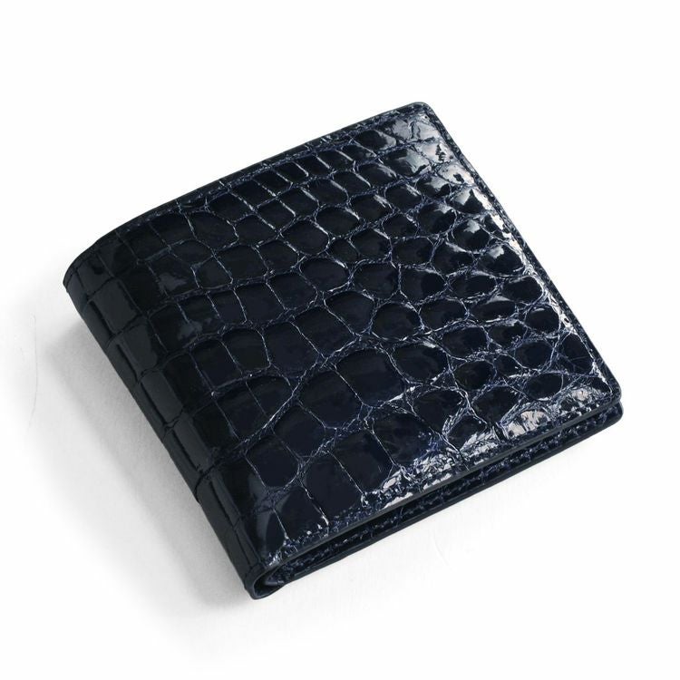 紙幣とカードをスマートに収納できるナイルクロコダイルの二つ折り紙幣入れ。