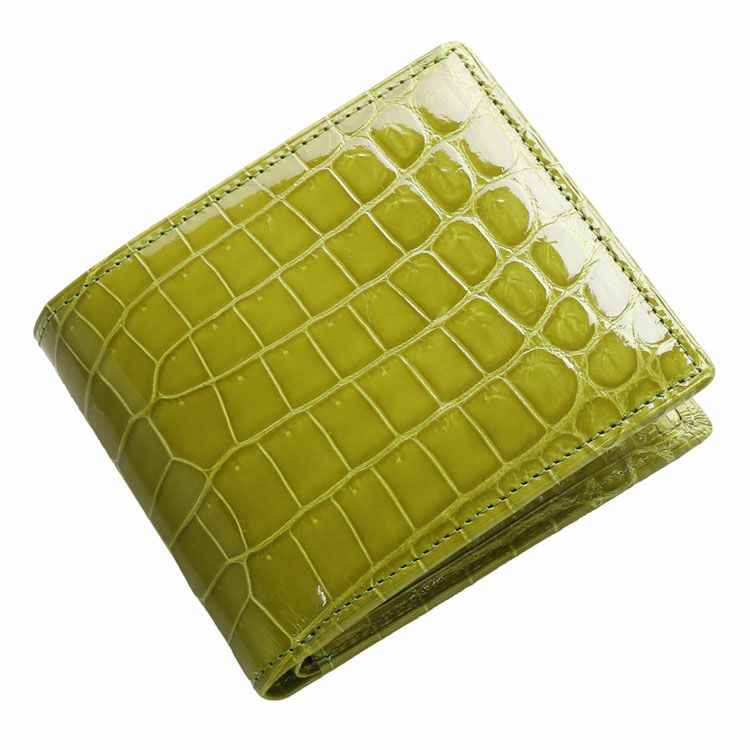 日本の職人が手掛けた美しい縫製のクロコダイル日本製二つ折り財布。