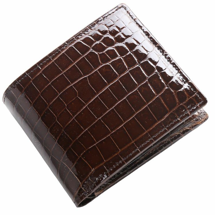 シンプルで高級感のあるクロコダイルの二つ折り財布でエレガントに使えます。