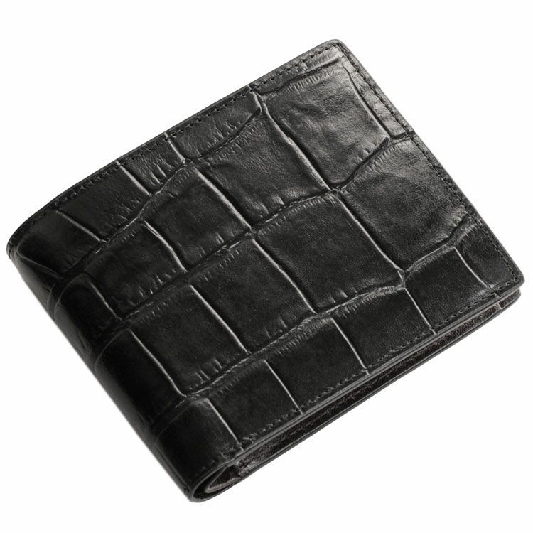 【名入れ 別途購入で可能】Mia Borsa 二つ折り 財布 メンズ 小銭入れ付き【ネコポスで送料無料】 クロコダイル 型押し 4FA