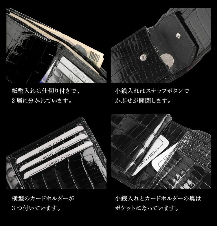 他の画像を見る exotic leather スモール クロコダイル 折り財布 メンズ シャイニング 加工『クロコダイル保証書付き』 4FA ¥ 96,800 税込 在庫切れ (0件) お気に入りに登録する