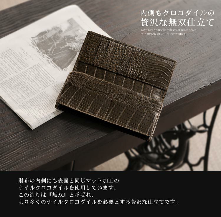 他の画像を見る exotic leather ナイル クロコダイル メンズ 長財布 無双 マット 加工 センター取り / 一枚革 / 日本製 / 束入れ ¥ 107,800 税込 4.11 (9件) お気に入りに登録する