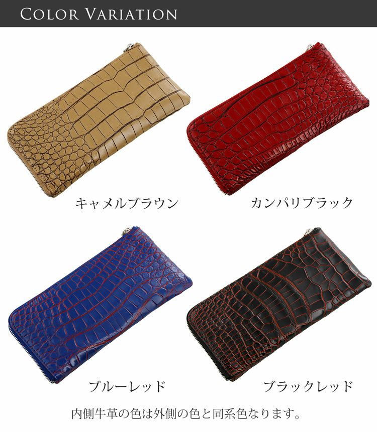 天然皮革 エキゾチックレザー クロコダイル 長財布 L字 ファスナー 小銭入れ 付き メンズ レッド/ブラック/ブルー/キャメル メンズ 男性 紳士 本革 ワニ革 プレゼント 普段使い 父 ギフト