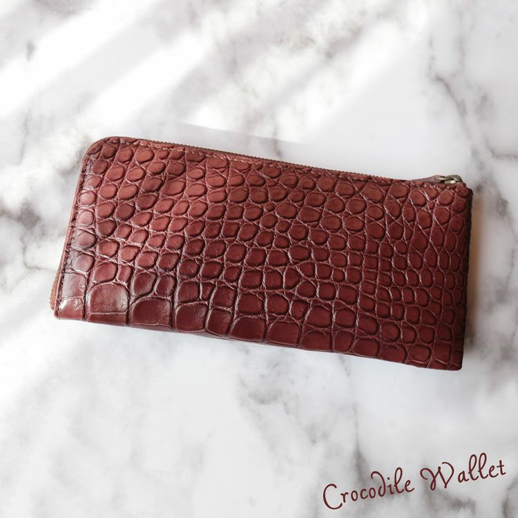 自然な光沢を放つハイシャイニング加工を施したクロコダイル長財布。