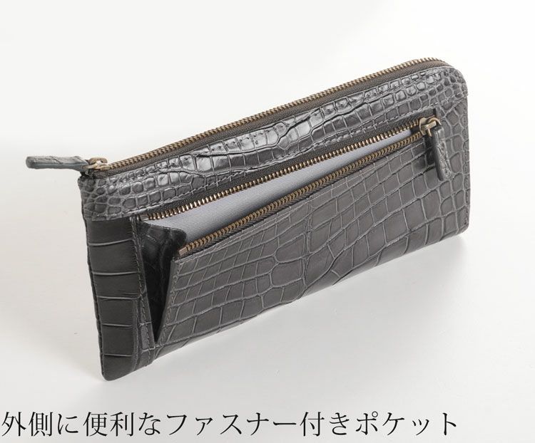 使いやすいL字ファスナー仕様で、スリムなフォルムが特徴です。