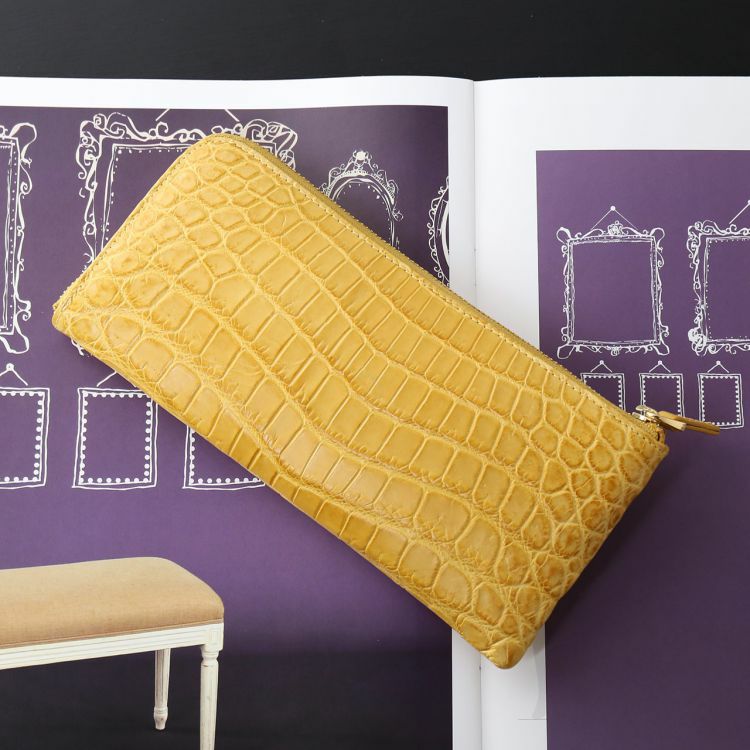 天然皮革 エキゾチックレザー クロコダイル 長財布 メンズ 本革 薄い マット L字ファスナー 薄型 スリム ワニ革 黄色 金運 プレゼント 父 男性 かっこいい 高級 上質 普段使い 使いやすい おしゃれ 革 レザー 40代 50代 ギフト バレンタイン (06001397-mens-1r)