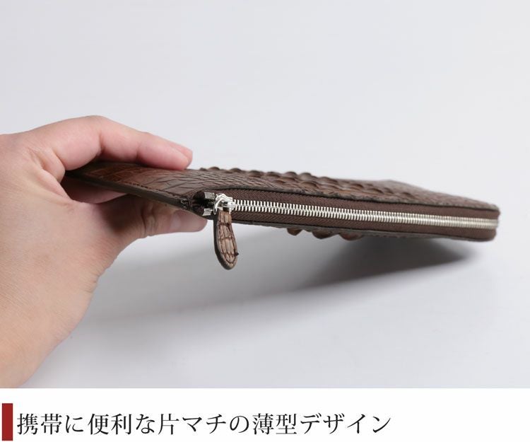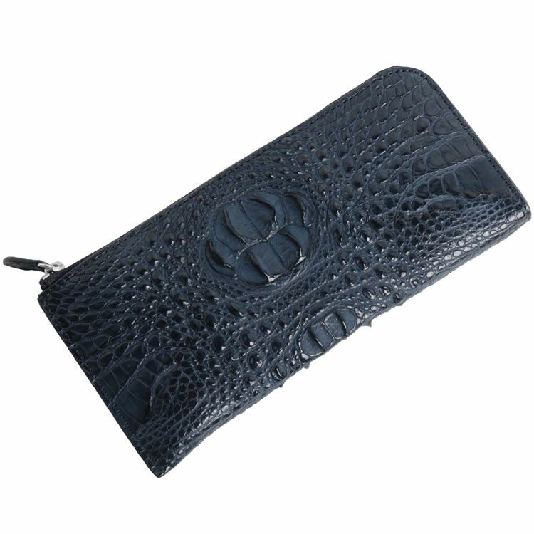 ゴツゴツした印象のクロコダイルホーンバックを使用したスリムなL字ファスナー長財布。