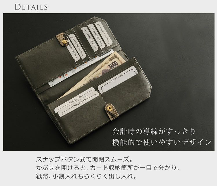 | 素材 | 表側:ダイヤモンドパイソン 内装:牛革、生地 |