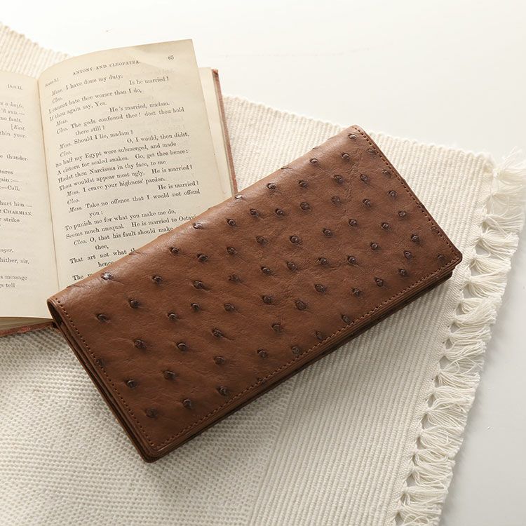 お札やカードをスマートに持ち運ぶ、オーストリッチの長財布です。