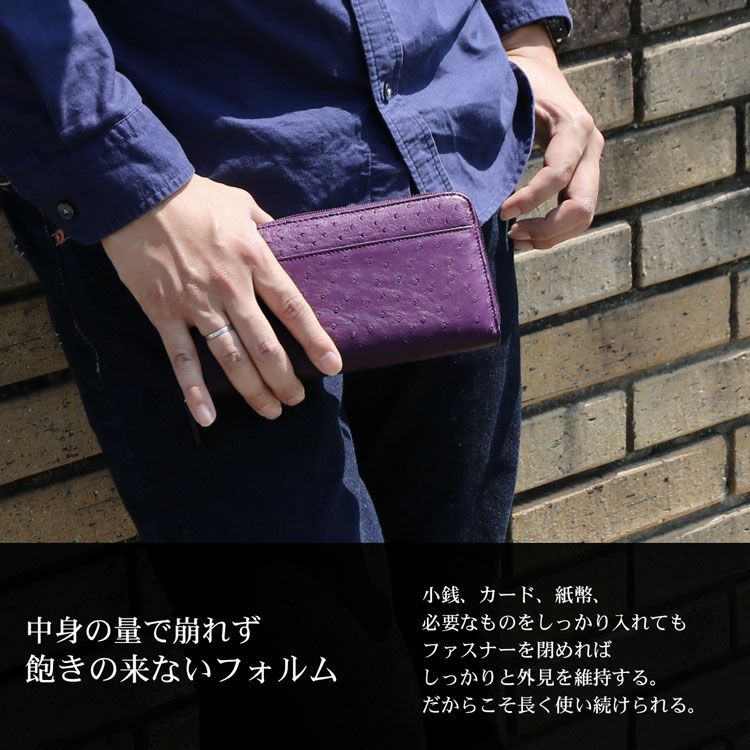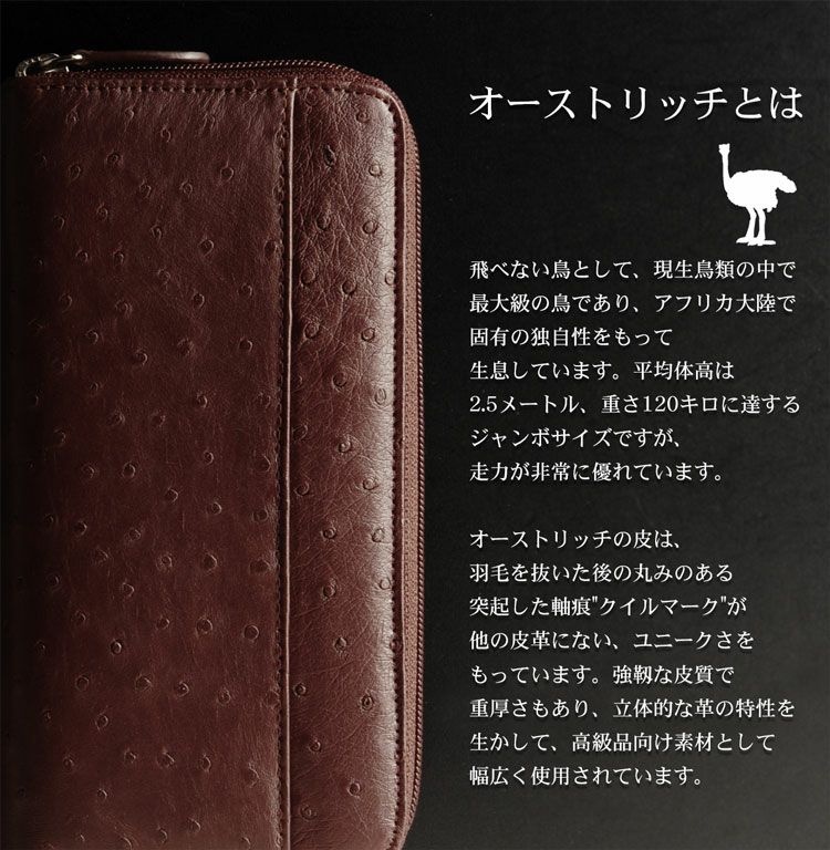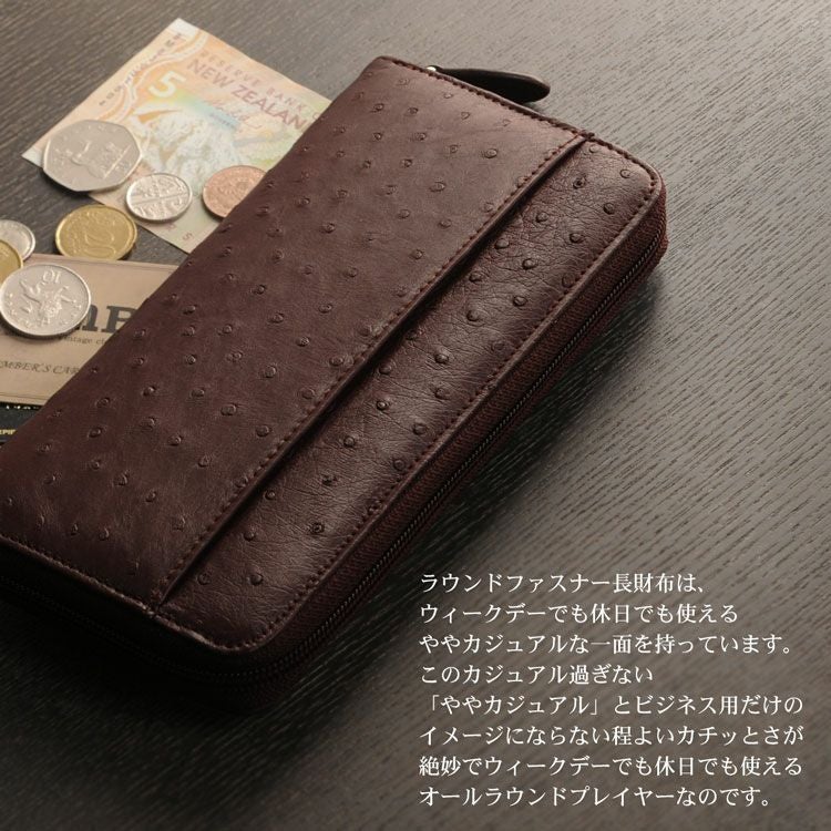 | 商品名:オーストリッチ 長財布 ラウンドファスナー ハーフポイント メンズ |