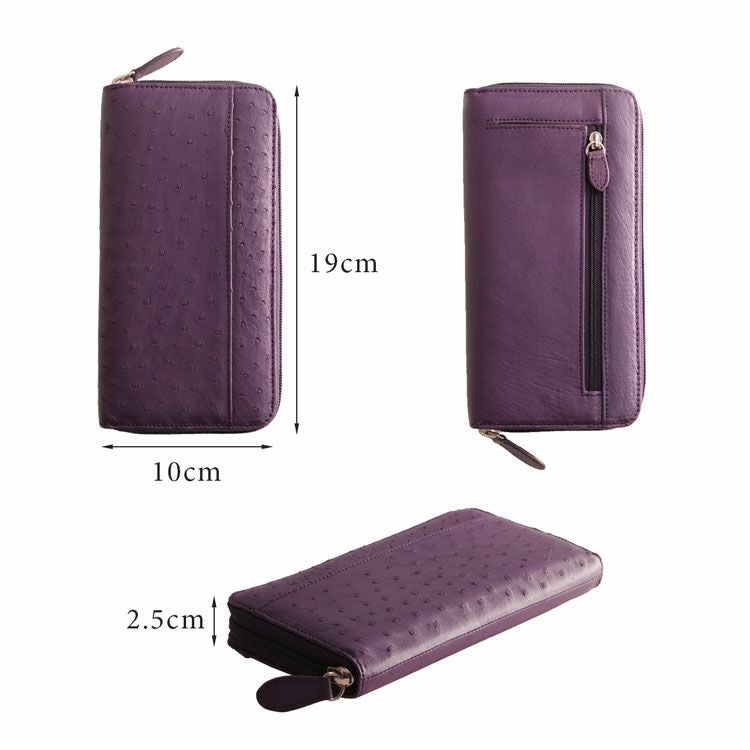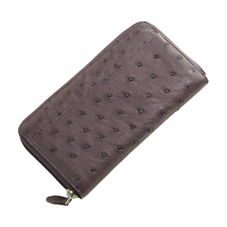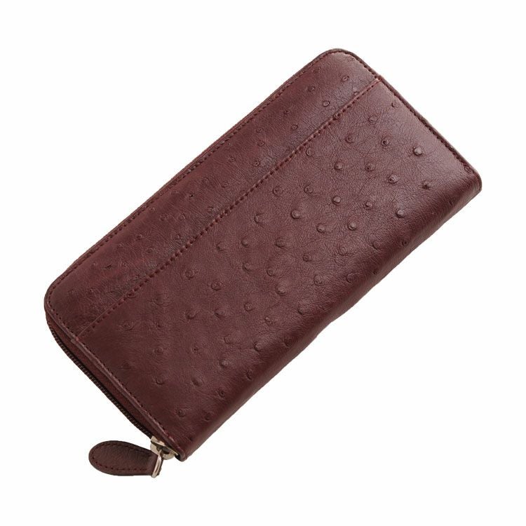 天然皮革 エキゾチックレザー オーストリッチ ラウンドファスナー 長財布 メンズ ハーフポイント メンズ 長財布メンズ パープル/ボルドー/ブラウン/ダークブラウン/ブラック 父 普段使い ギフト プレゼント