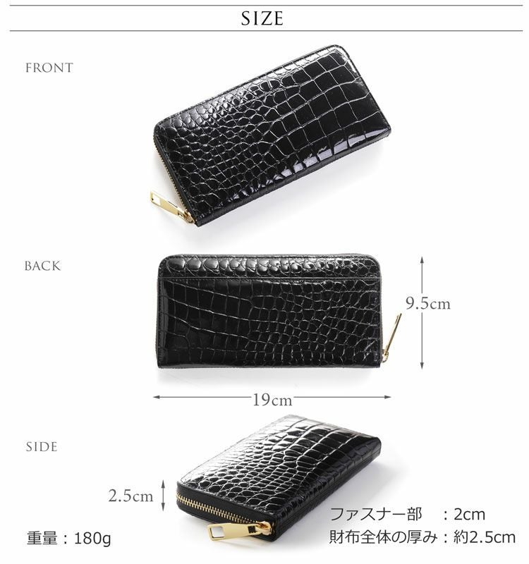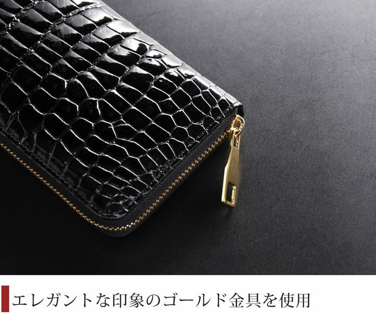 スモールクロコダイルで仕立てたラウンドファスナー長財布です。
