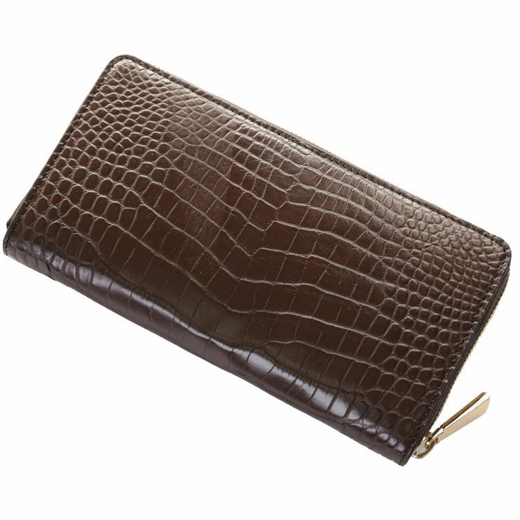 商品名:クロコダイル 長財布 メンズ ラウンドファスナー センター取り 一枚革 マット 加工 ゴールド金具 sc