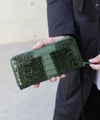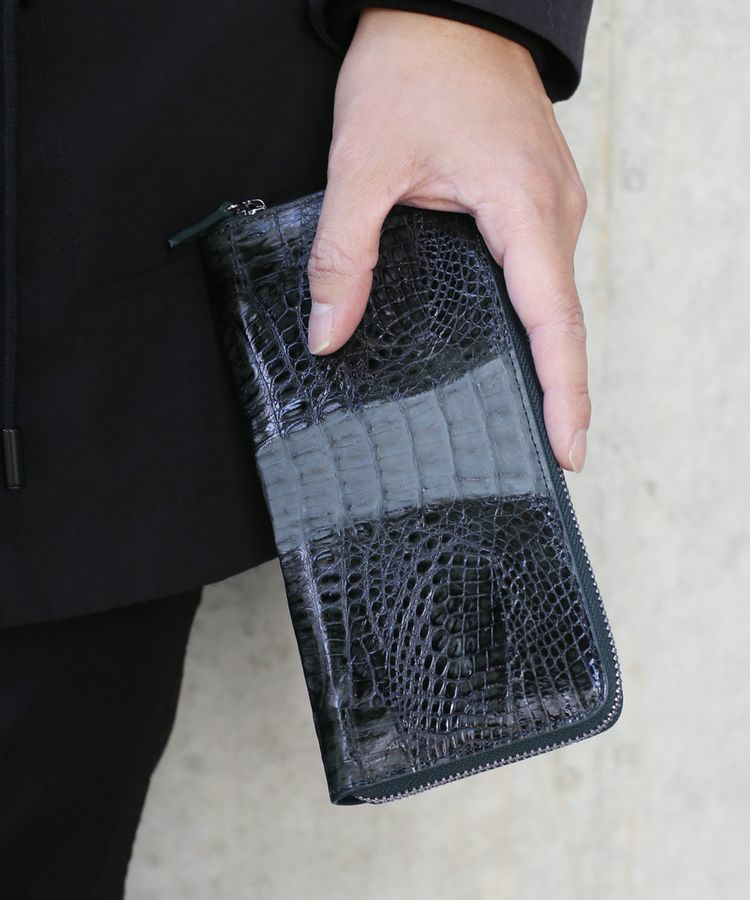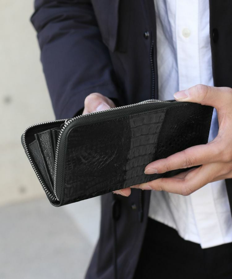 カイマンの尾の部分を使用したラウンドファスナー長財布。