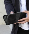 クロコダイルやアリゲーターと並ぶワニ革・カイマンは、高級感あふれるスタイルに。