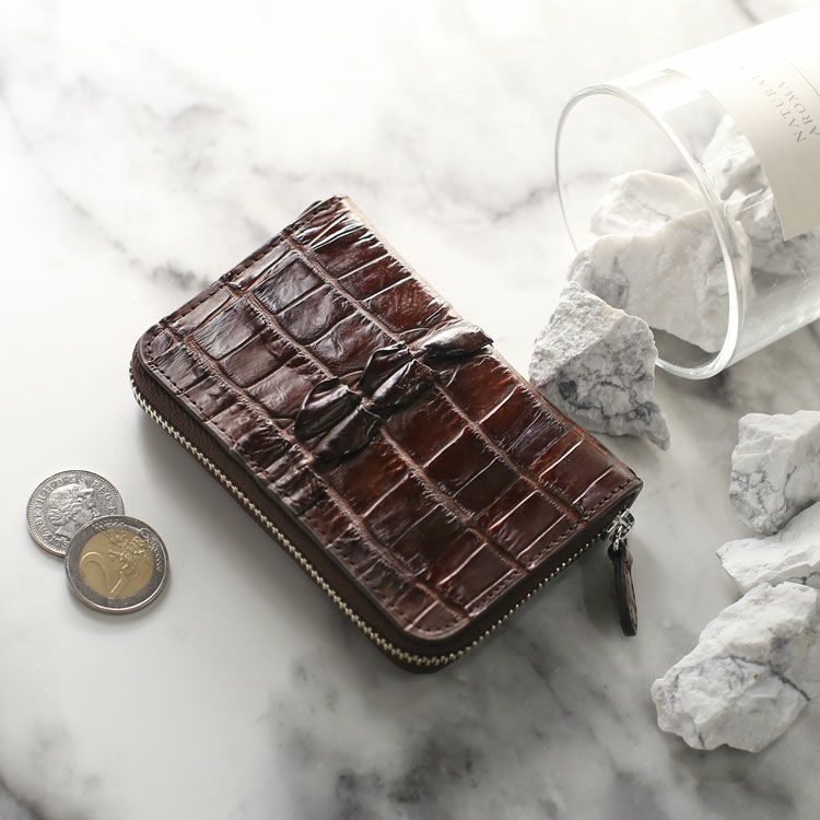 クロコダイル ホーンバック メンズ 小銭入れ【ネコポスで送料無料】ミニ財布 ラウンドファスナー コインケース 本革 コンパクト財布 キャッシュレス 小さい 軽い お財布 プレゼント ギフト