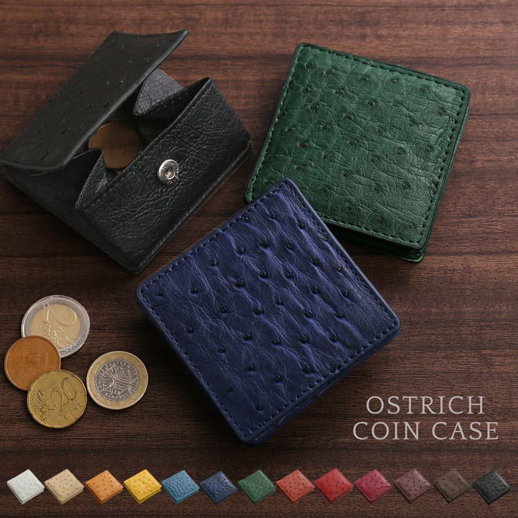 天然皮革 エキゾチックレザー オーストリッチ 小銭入れ ボックス型 本革 小さい 財布 メンズ コインケース スナップボタン 開閉 ミニ財布 全13色 プレゼント 父 普段使い