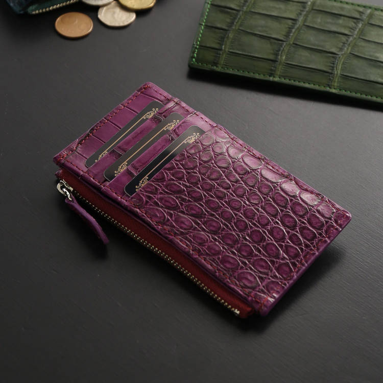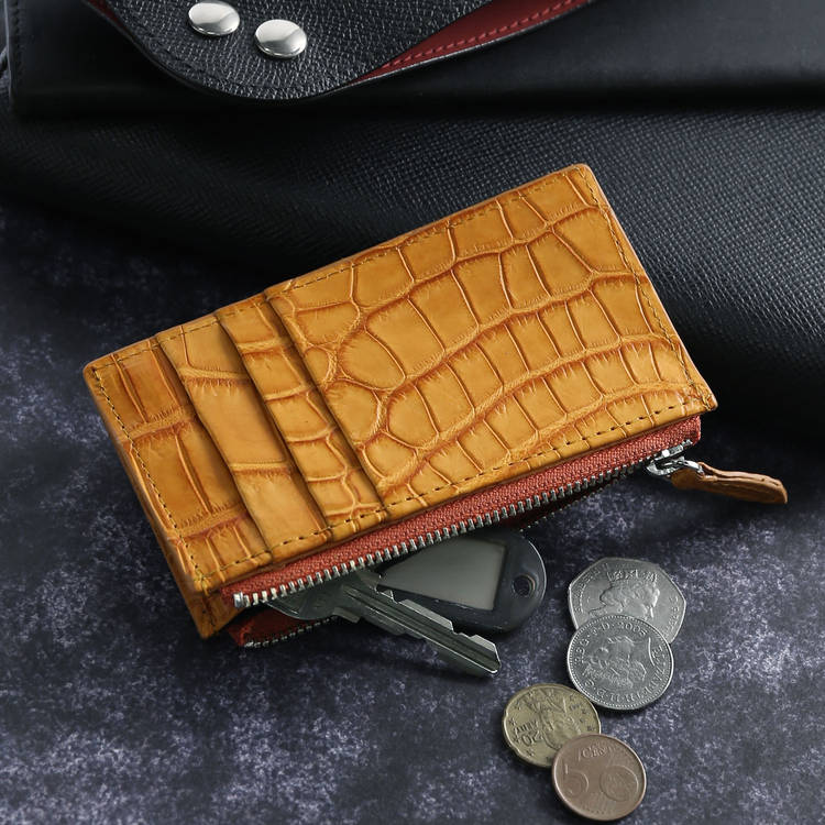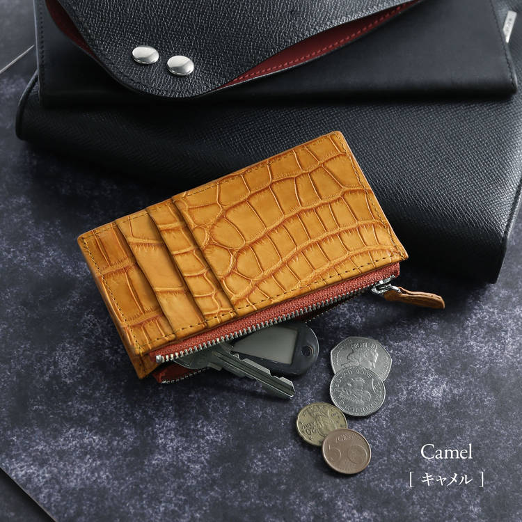 ※キーワード:ファスナーポケット付きカードケース スモールクロコダイル ポロサス クロコダイル カードケース 日本製 薄型 小銭入れ 鍵収納 ギフト プレゼント メンズ レディース 高級 本革 ワニ革 財布 ミニ財布 ジャパンメイド 4FA 06001943-mens-1r アンティークカラー クロコ 収納 コンパクト