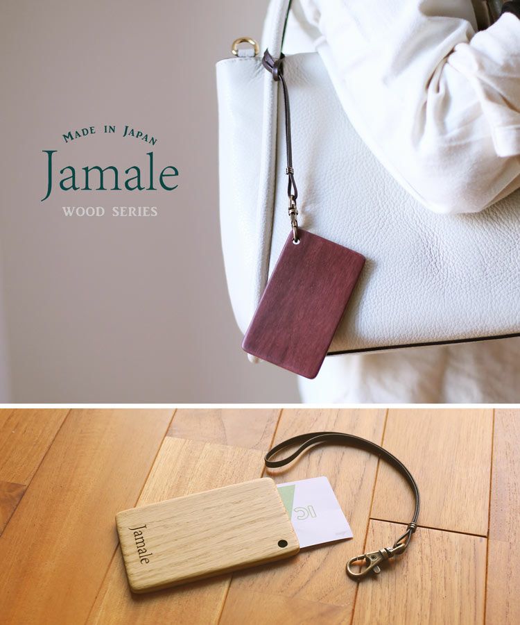 レビュー記載でレザーストラッププレゼント! 【名入れ 可能】 Jamale 天然木 縦型 ICカードケース 日本製 【ネコポスで送料無料】4FA