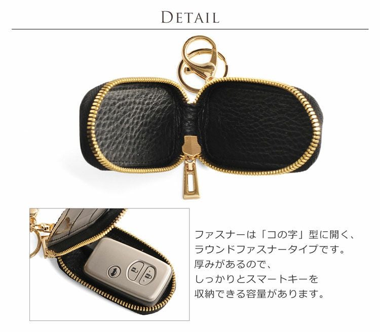 ラウンドファスナーで開閉し、スマートキーを収納できます。