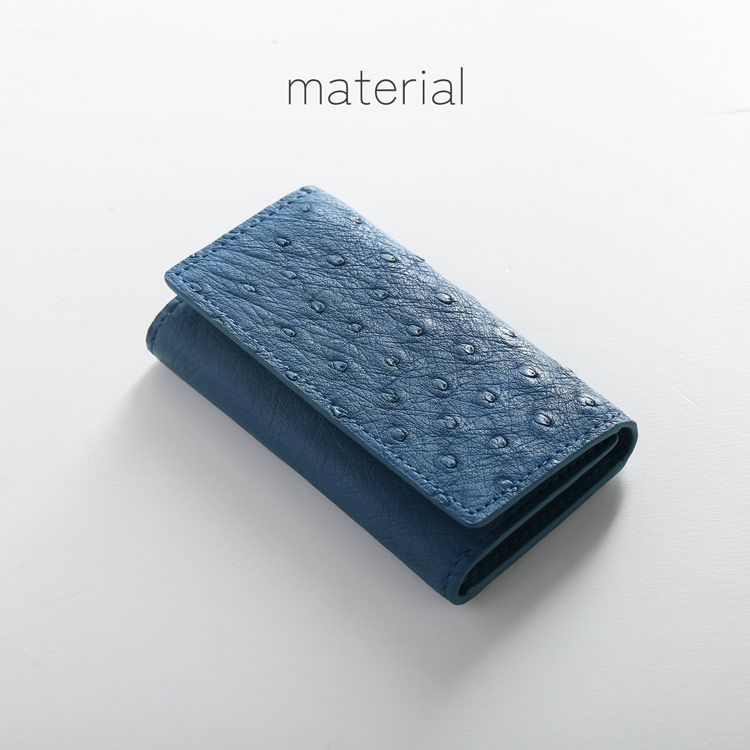 オーストリッチ キーケース メンズ 男性 ブルー 青 キーリング キーホルダー 本革 スマートキー 上品 おしゃれ 軽量 軽い 柔らかい 使いやすい コンパクト 車 大人 鍵 スマートキーケース プレゼント ギフト(06001765-mens-1r)