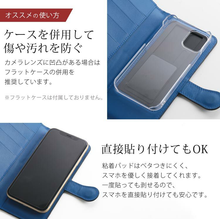 粘着パッドで取り付けるタイプなので端末の形やサイズを選ばず、様々な機種に使える便利なアイテム。