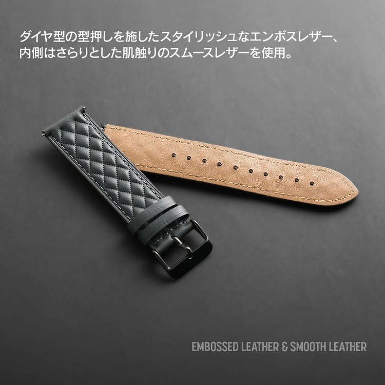 EDEW WEAR エンボスレザー 時計ベルト 22mm幅 付け替え用 本革 グレー スマートウォッチ付け替えベルト 【ネコポスで送料無料】(09000705r)