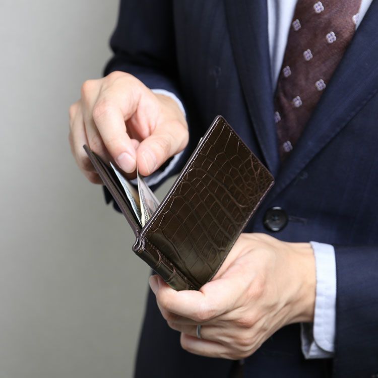 ※キーワード:ナイルクロコダイル 鰐革 スタイリッシュ 紳士 40代 50代 希少素材 オシャレ ビジネス カジュアル 薄型財布 札入れ 札はさみ 札ばさみ マットクロコダイル ユニセックス